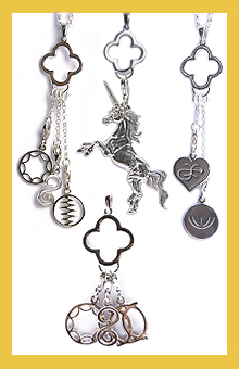An unseren Charm Carrier kannst du, je nach Belieben, Charms entweder an die (abnehmbaren) Ketten hängen oder auch direkt an den Kristall.